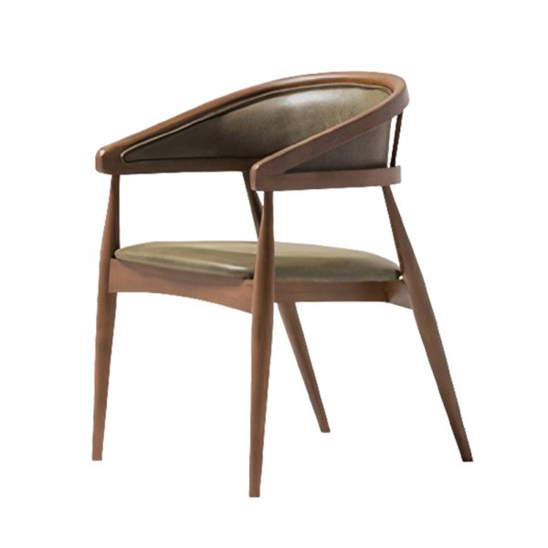כיסא מודרני עם מסגרת עץ ורגליים בזווית,