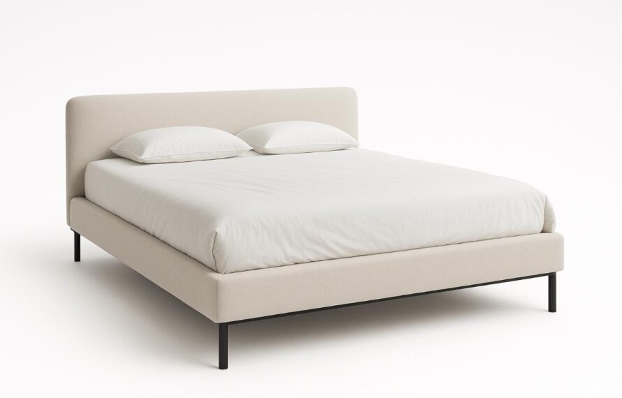 מסגרת מיטה מרופדת בקווים נקיים, המדגישה את הפשטות והאלגנטיות של הדגם.